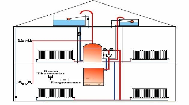 Tüm sistem ısıtma suyunu sirküle ettiren bir pompaya sahiptir. Sıcak su, genellikle bir su deposu içinde saklanan sıcak kullanım suyu sağlamak için başka bir ısı eşanjörünü beslemek içinde kullanılır.
